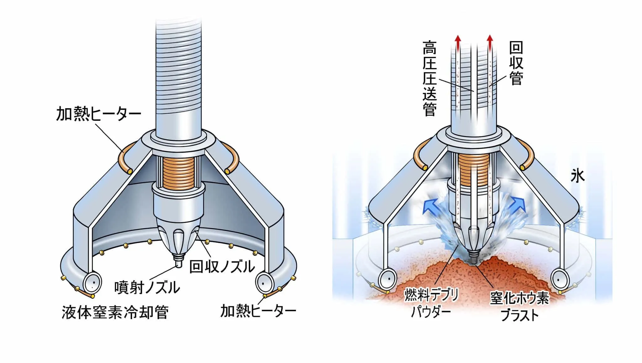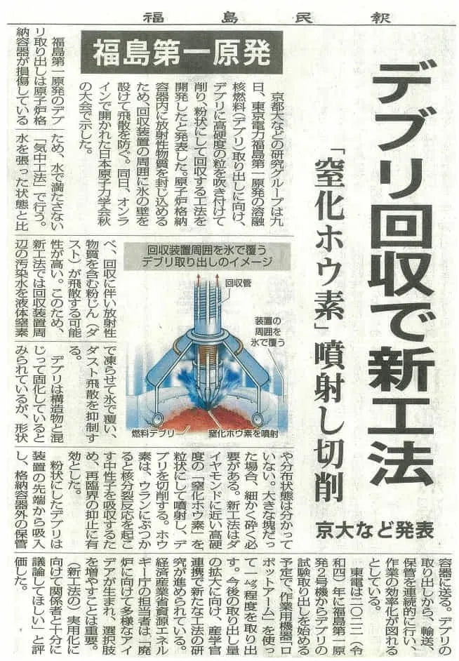 弊社は京都大学と共に100kg/時間で燃料デブリを回収する技術を開発しました。