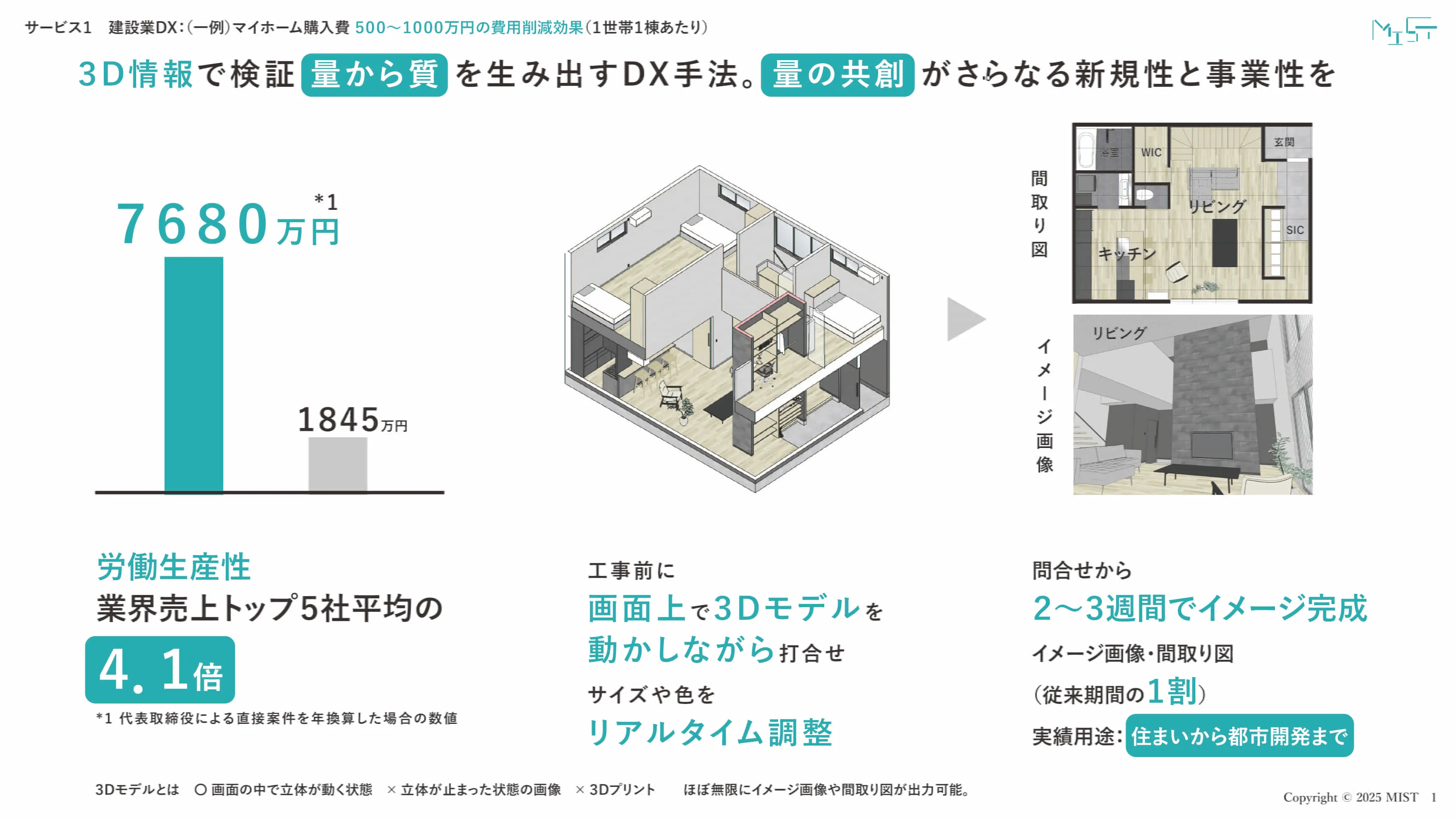 3Dモデル主流化で企画・設計をDX。人件費90%削減・作業時間8割短縮の実績あり。独自AI開発中