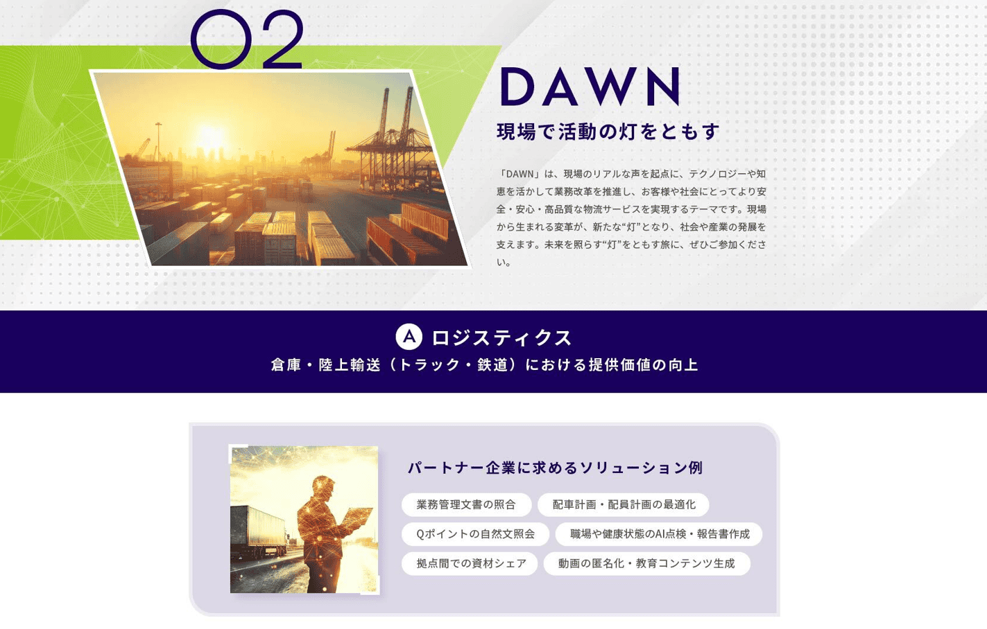 AI・IoT・データ活用など先端テクノロジーとの共創を通じ、物流現場を変革。