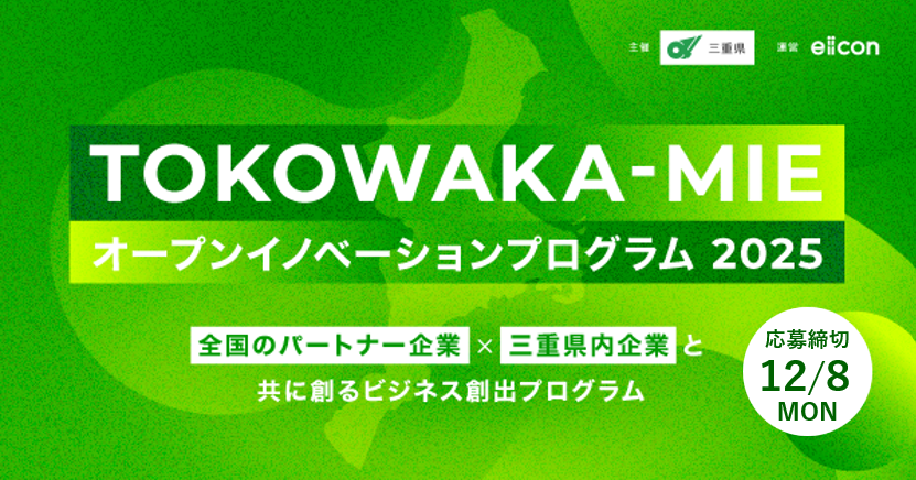 地域イノベーション推進本部 東海支社 東海支援1G三重県主催の「TOKOWAKA-MIE オープンイノベーション推進事業」。
