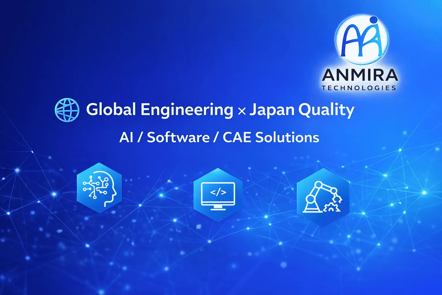Anmira Technologies株式会社は、日本企業とグローバル技術人材をつなぐ技術パートナーです。ソフトウェア開発、AI・データ分析、CAE分野において、高品質かつコスト効率の高いソリューションを提供します。インド・欧州のパートナーと連携し、オンサイト・オフショア・ハイブリッド対応が可能です。エンジニア不足、開発コスト削減、DX推進の課題解決を支援します。PoCや小規模案件から柔軟に対応可能です。