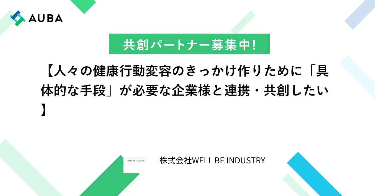 https://auba.eiicon.net/projects/7940 #課題解決No.3「すべての人に健康と福祉を」 #共同研究 #リソース提供(既存技術の提供・特許流用の検討など) #事業提携 #新市場の模索 #3カ月以内の提携希望 #スタートアップ #テストマーケティング