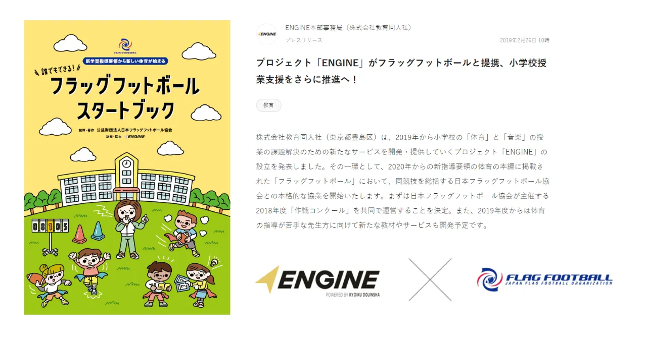 同社の「ENGINEプロジェクト」は第一弾として2020年5月コロナ禍における学校体育サポートのためのダウンロード教材を提供開始、リリースから約2ヶ月で1,000校を越える小学校から申し込みがありました。2021年夏には小学校体育支援サービス「カラチャレ」を全国リリース。企業とのタイアップにより、小学校へ無料で提供することが決定しています。