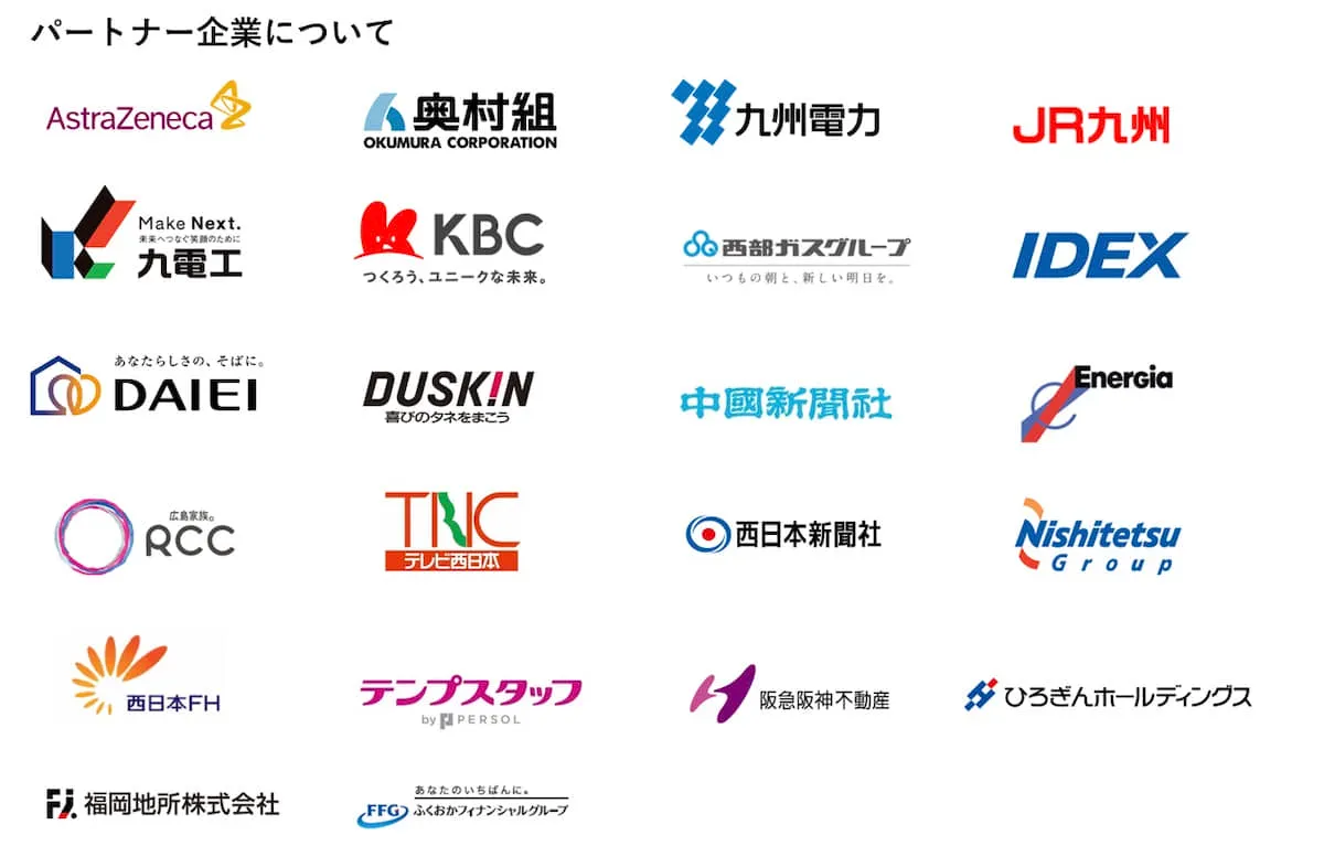 ▲今年度のパートナー企業。西日本エリアに拠点を置く地場の大手企業が多数参画している。
