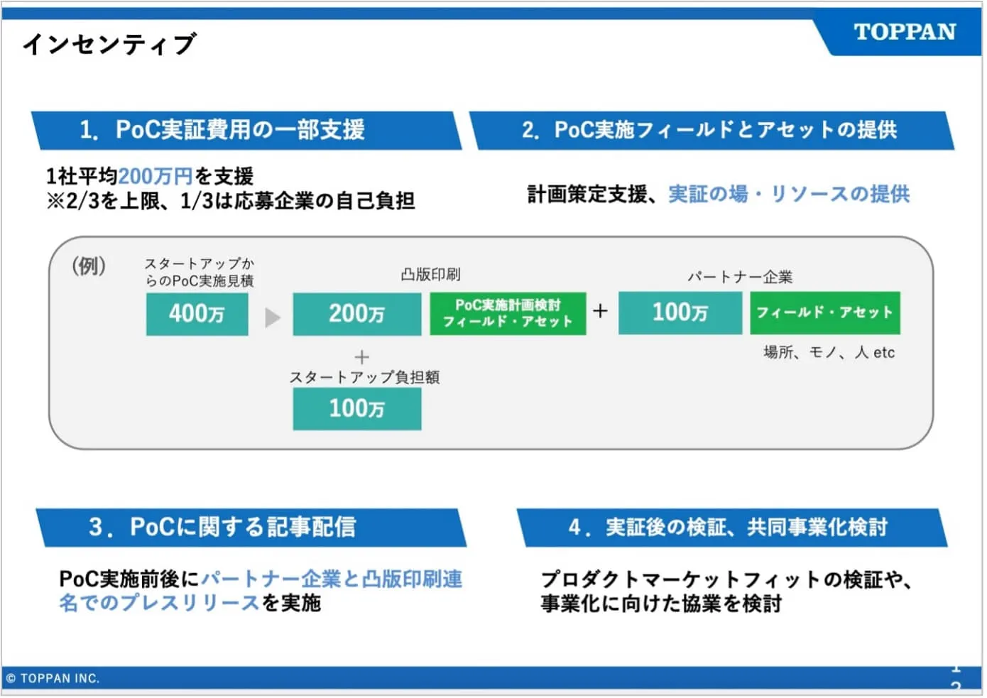 palan・齋藤氏: 私たちのようなスタートアップは、技術やアイデアを持っていても、それを事業会社の悩みと紐づけ、魅力的な提案や事業へと昇華させることが難しいと感じることが多いです。そこを凸版印刷さんにつないでもらえる点が、本プログラムの魅力でしょう。