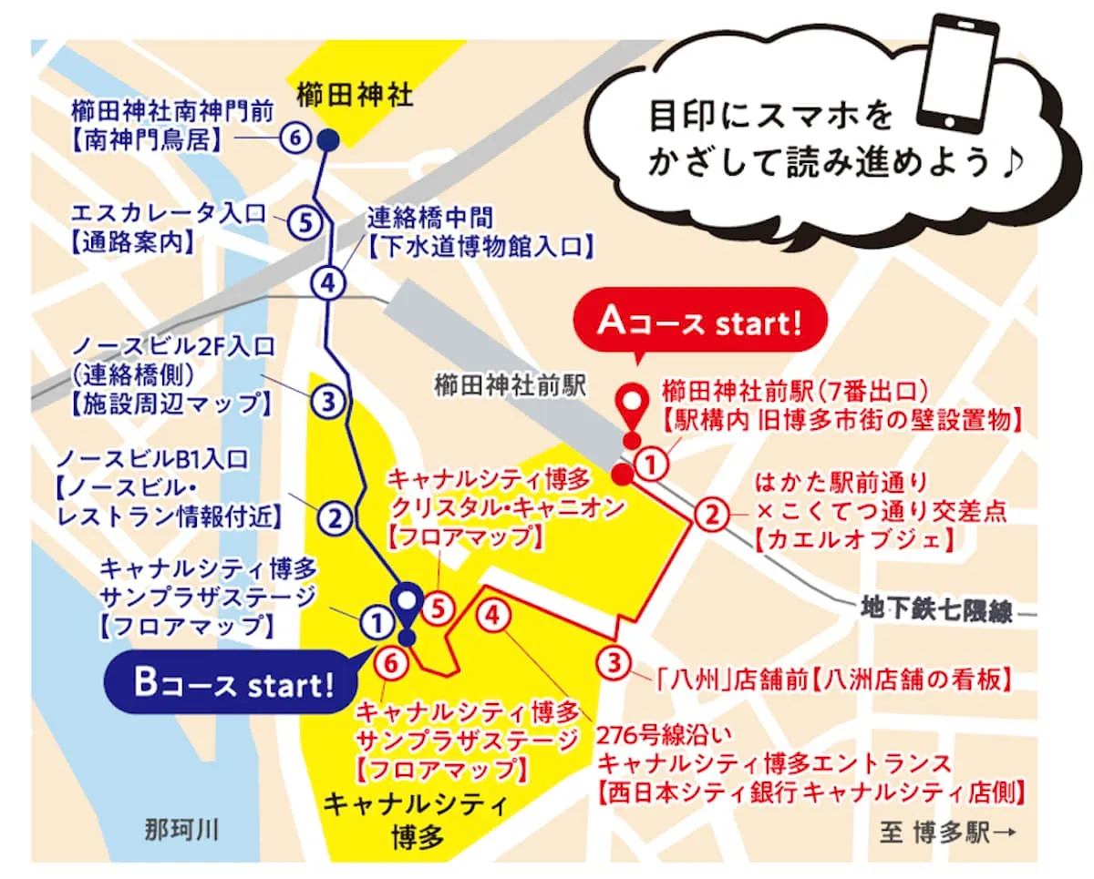 キャナルシティ博多や櫛田神社周辺にARコミックを配置し、回遊性の向上へ